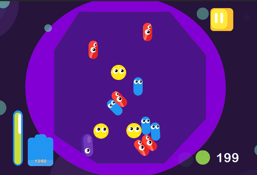 The player’s goal is to be the only germ inside the petri dish. Trap and consume other germs by encircling them. Then, reproduce your germ with the nutrients you got from consuming.