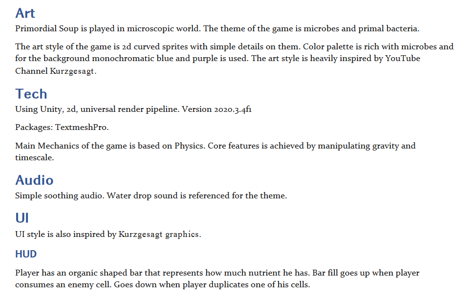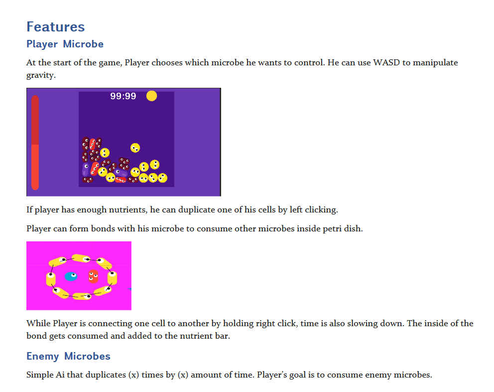 Primordial Soup is a 2d puzzle game that the player is inside a petri dish. The Player chooses a primal microbe and competes with other microbes for dominance inside the petri dish.